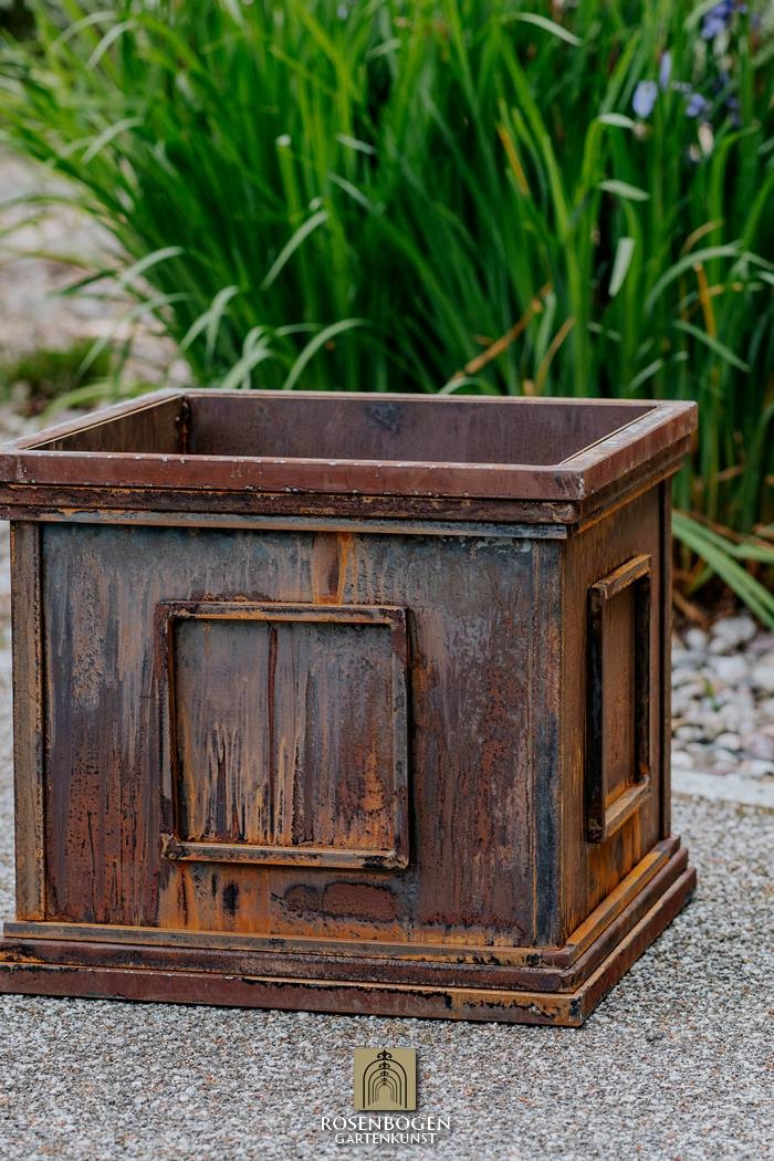 The Bolea plan ter impresses with its classic design and characterful surface in a natural rust look. With a height of 36 cm and a width and depth of 40 cm, it offers enough space for flowers, shrubs or small trees