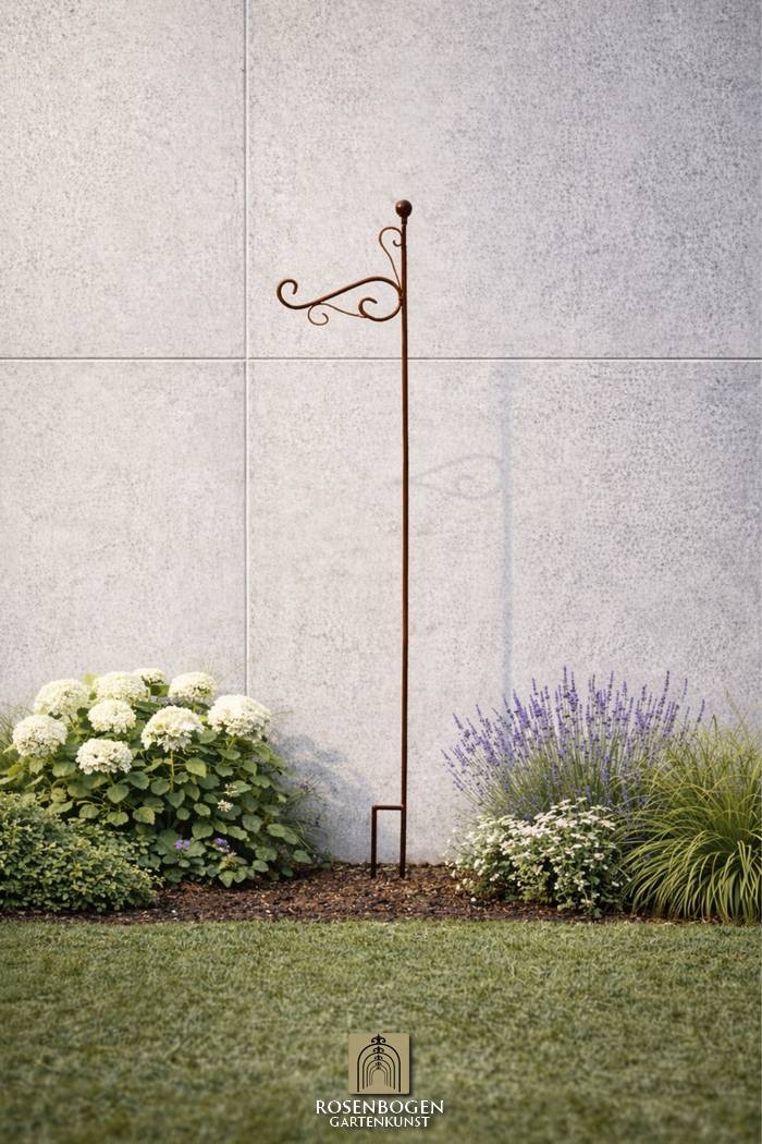 The RUNA climbing support is more than just a practical support for your garden plants - it is a decorative element that enhances any green space with its elegant curves. With a height of 110 cm (plus 20 cm ground spike) and a projection of 46 cm, RUNA is ideal for hanging baskets, roses or lighter climbing plants