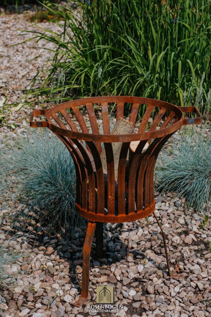 Enno combines a traditional fire basket look with a modern, filigree look. With its compact dimensions of 65 cm high, 48-58 cm wide and 35 cm deep, it is a stylish companion for garden evenings and cosy fire rounds