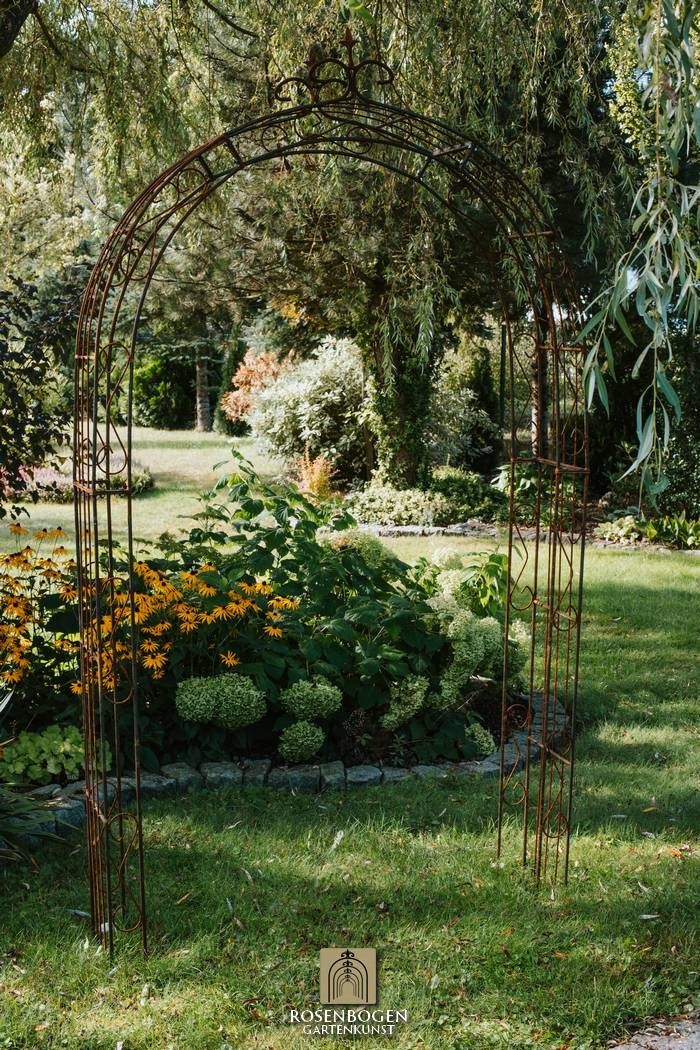 This high quality metal arch works perfectly as a stable climbing support for roses, clematis and other vigorous climbing plants. Its generous height allows plants to develop naturally while maintaining a strong and balanced structure. The elegant ornamental pattern and slender lines create a timeless design that fits beautifully into classic gardens as well as more modern landscapes.
