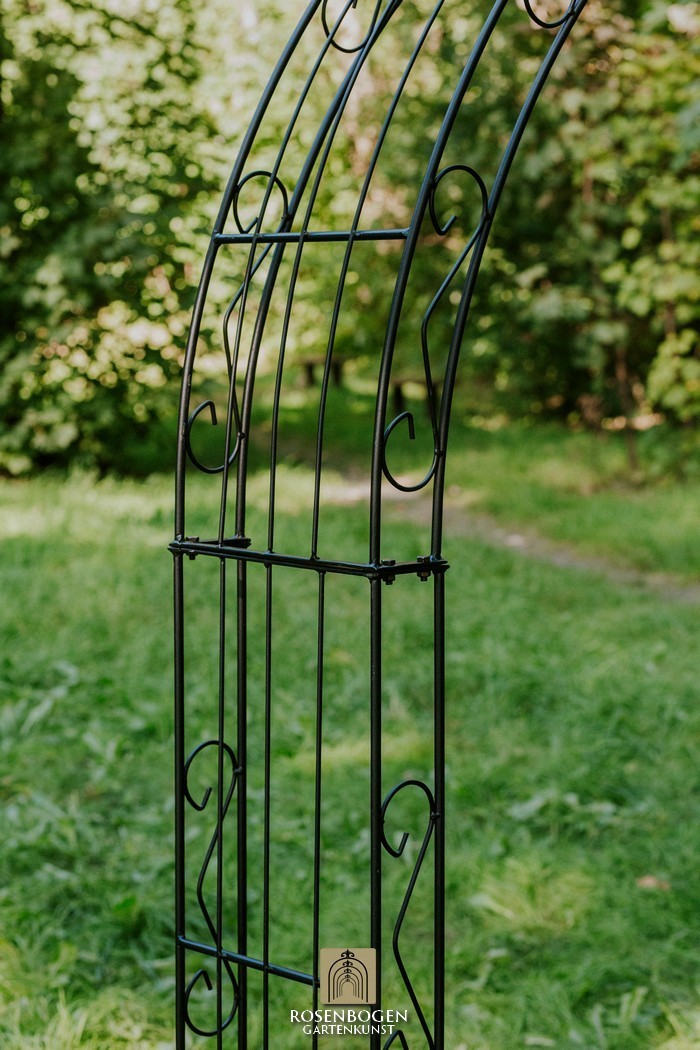 The Premium Garden Arch LEA Spitze made from solid steel gives gardens a distinctive and refined character. Unlike standard arches, this Premium version is handcrafted and finished with a double protection system. Each arch is first hot dip galvanised to ensure long term corrosion resistance and then powder coated in the colour chosen by the customer. This process provides excellent durability and a clean, elegant finish suitable for demanding outdoor environments.