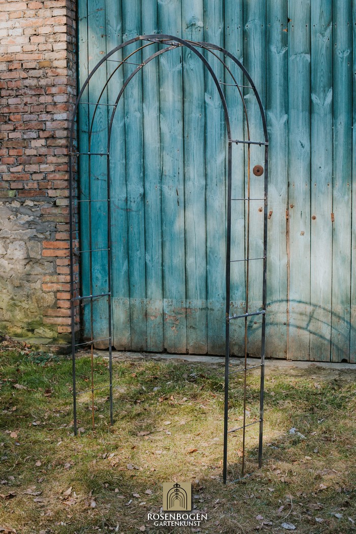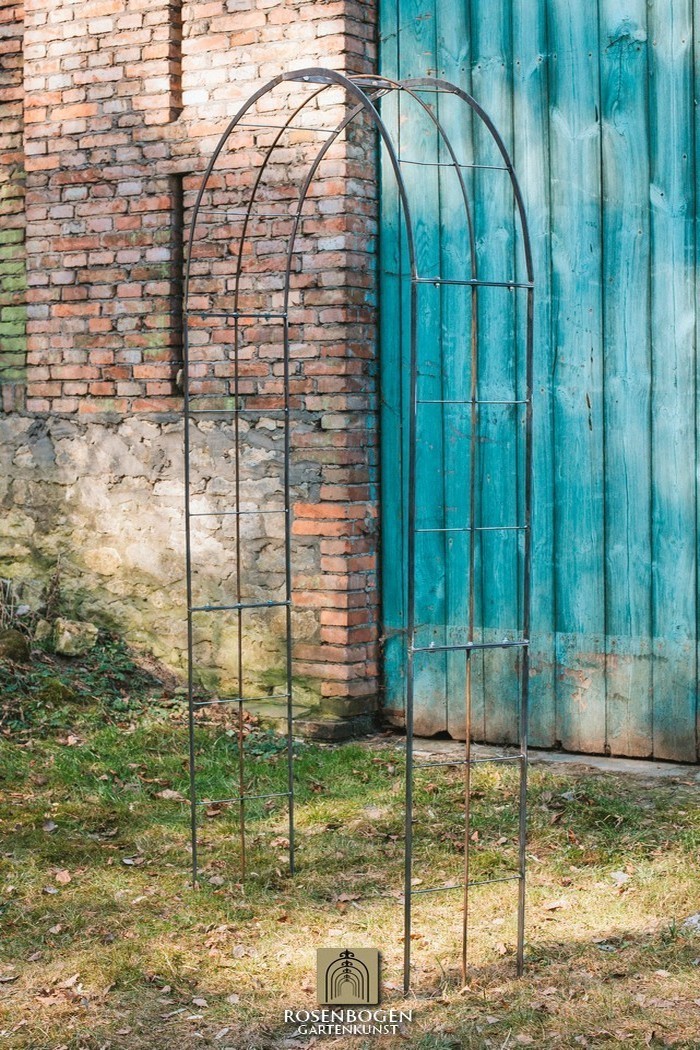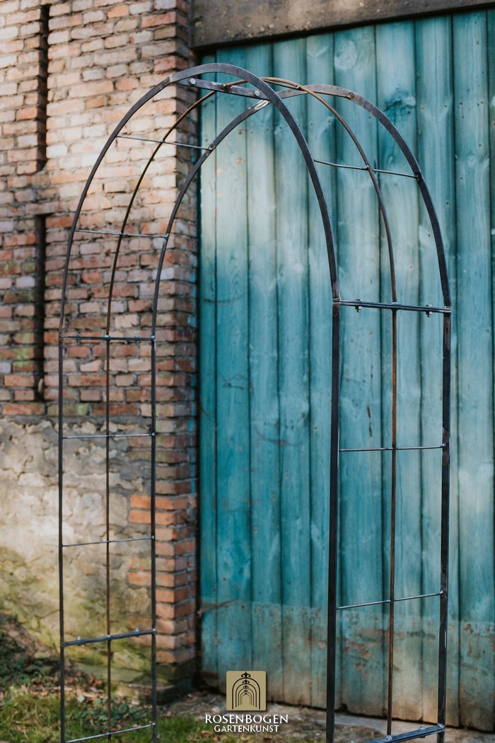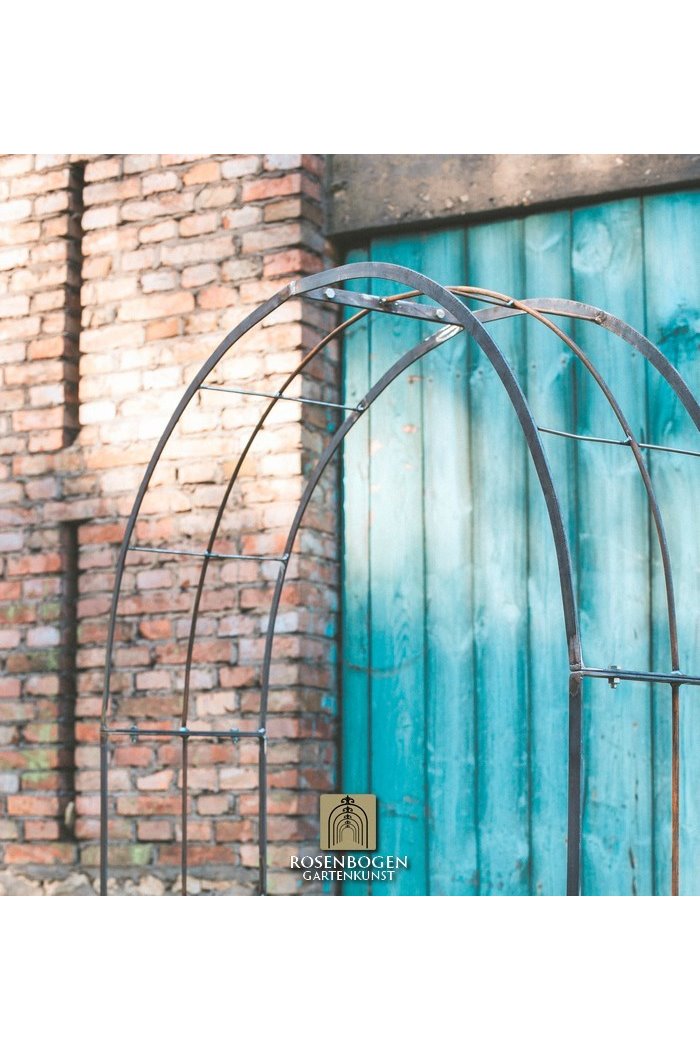 The Garden arch is made of flat iron + wire and is available in a width of 120 cm.