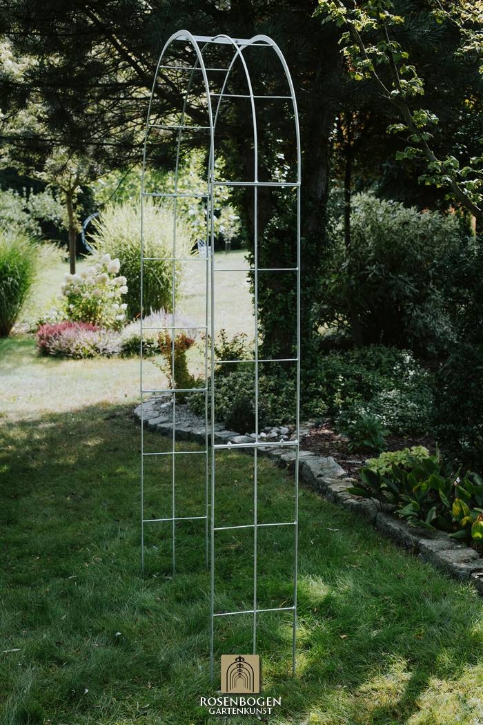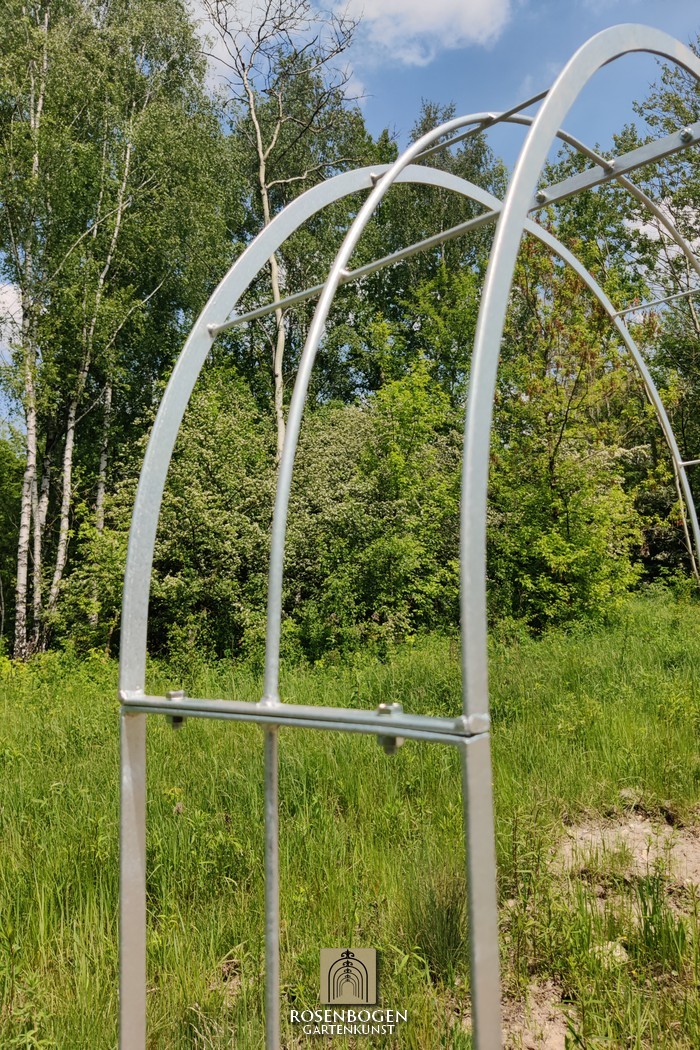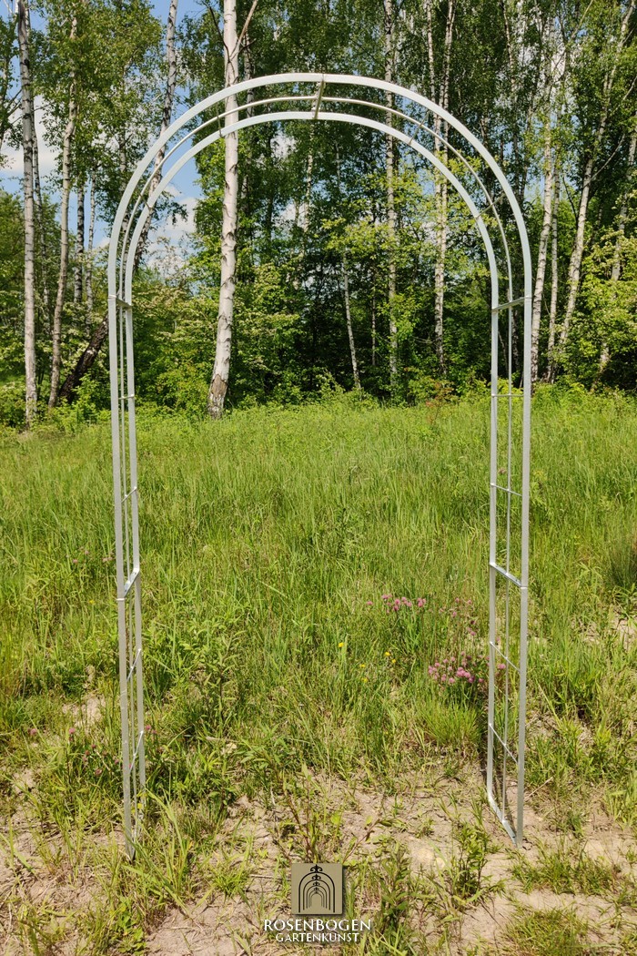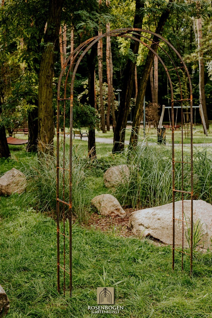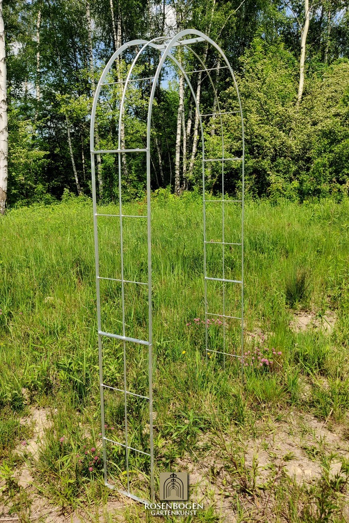 The Garden arch is made of flat iron + wire and is available in a width of 120 cm.