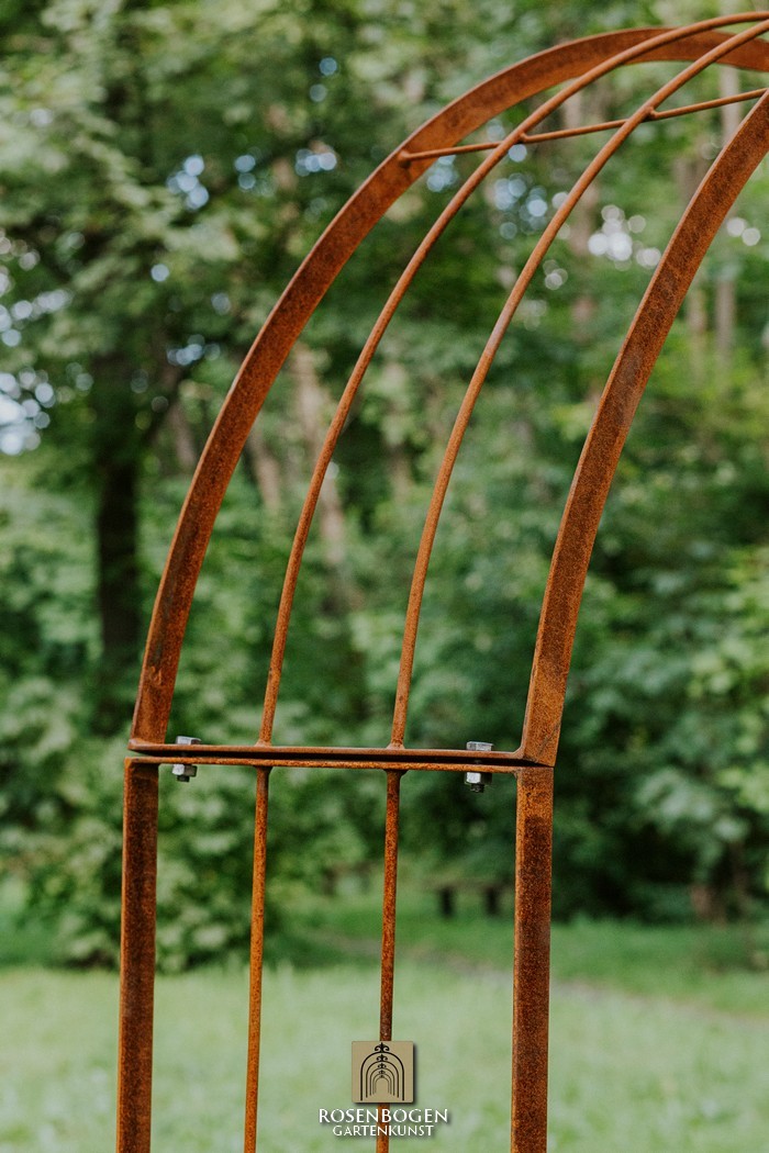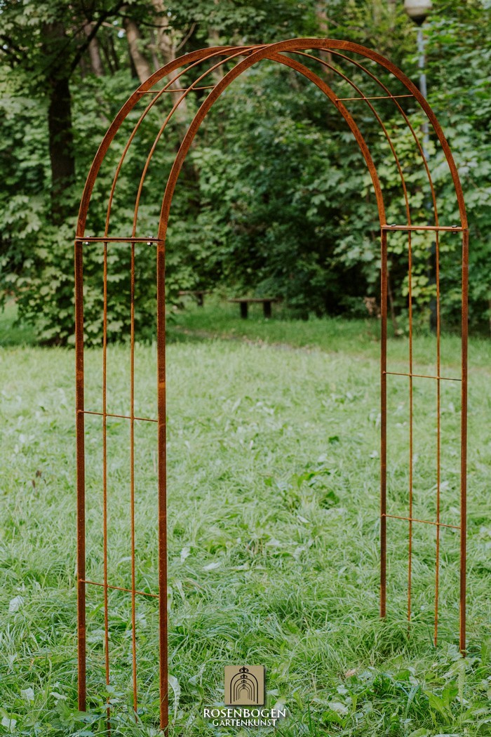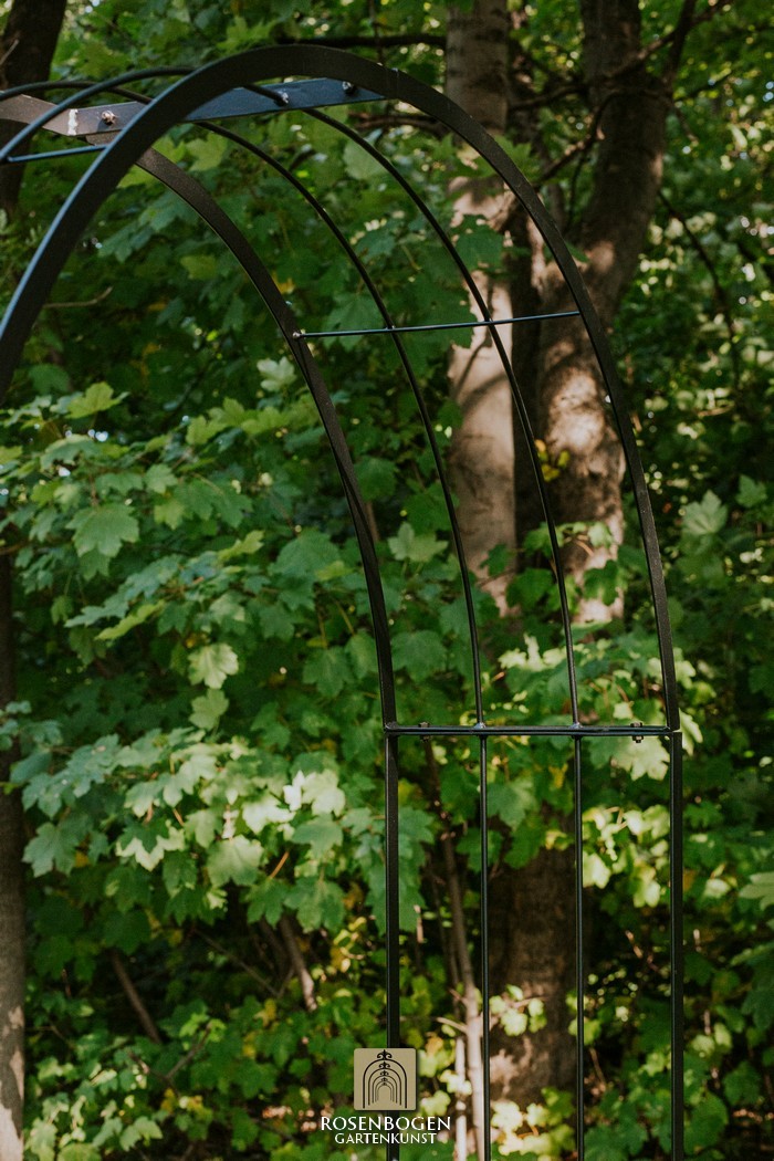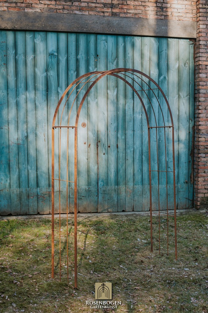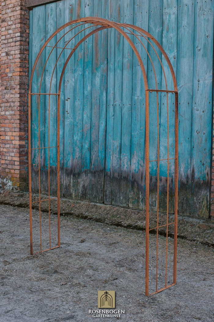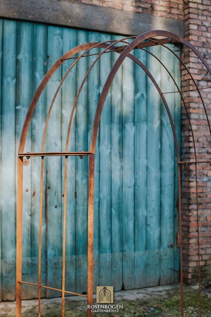 The Garden arch is available in sizes from 120 cm to 170 cm. It is made of solid iron and is available in a rust-look, black or galvanised version.