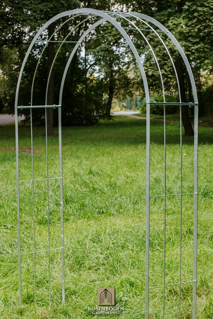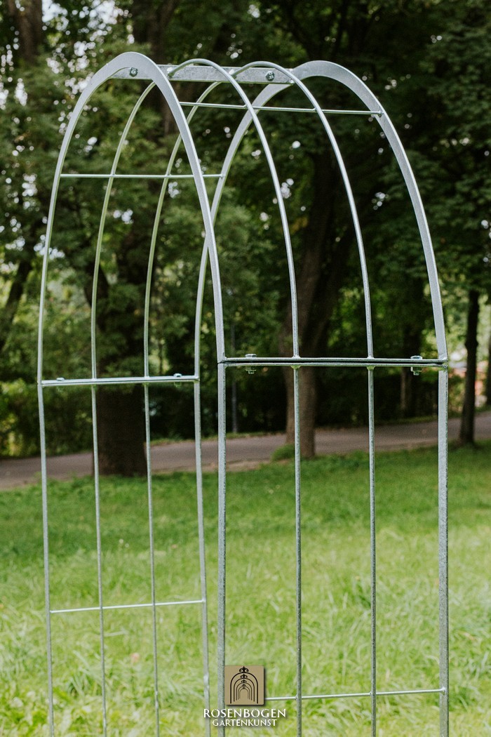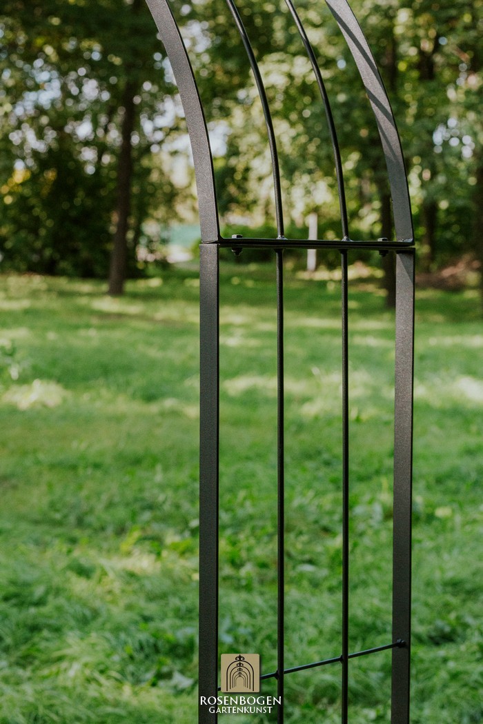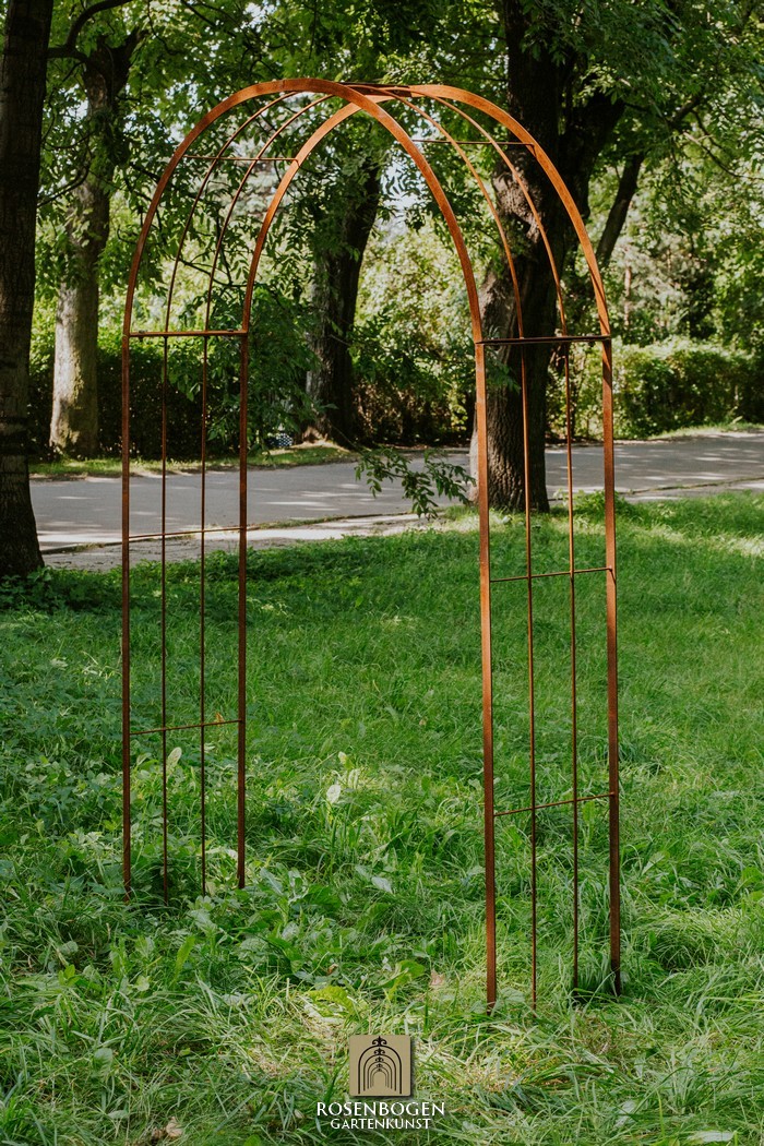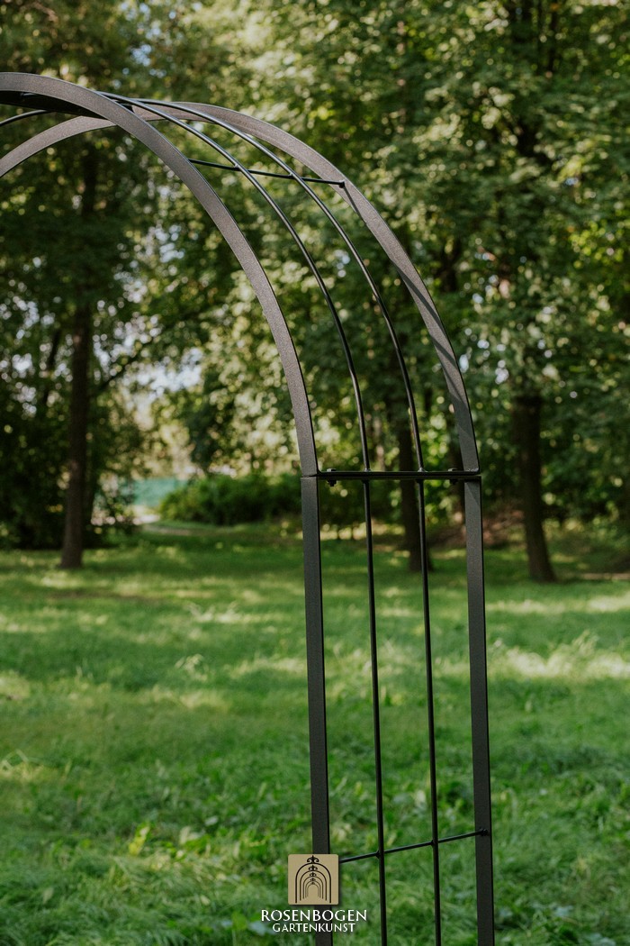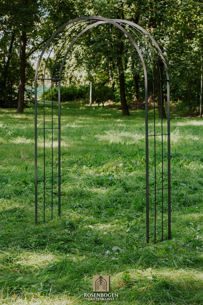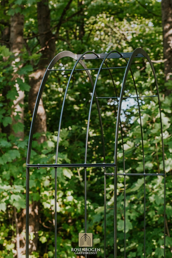 The Garden arch is available in sizes from 120 cm to 170 cm. It is made of solid iron and is available in a rust-look, black or galvanised version.