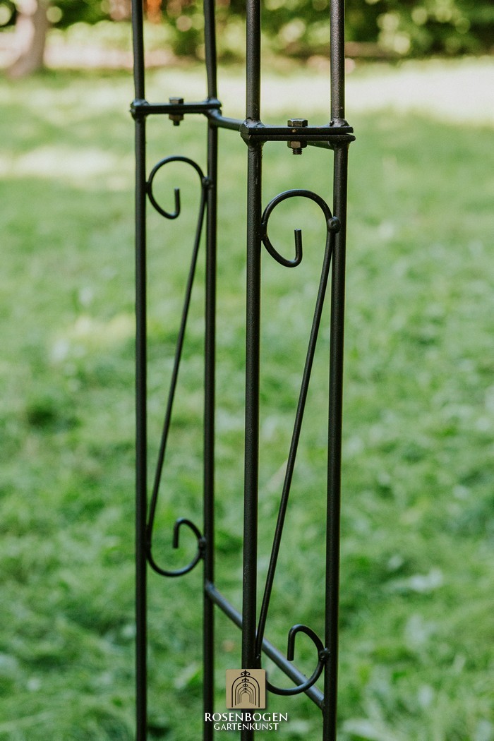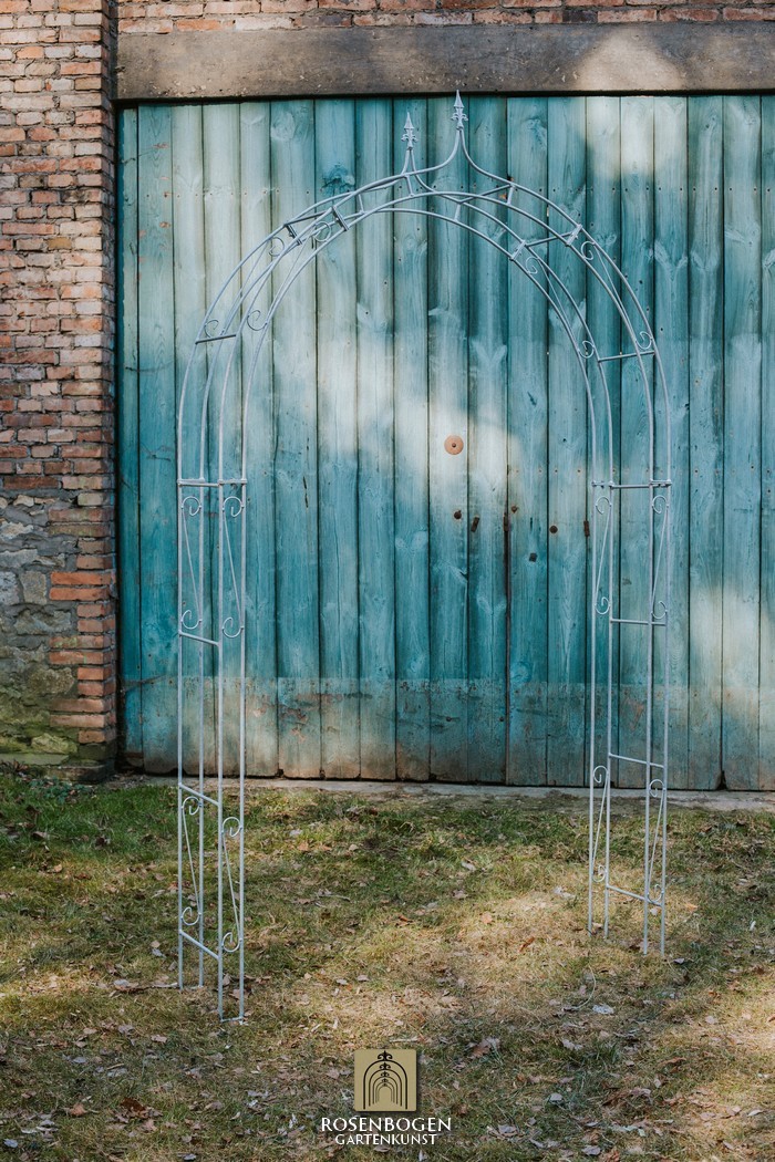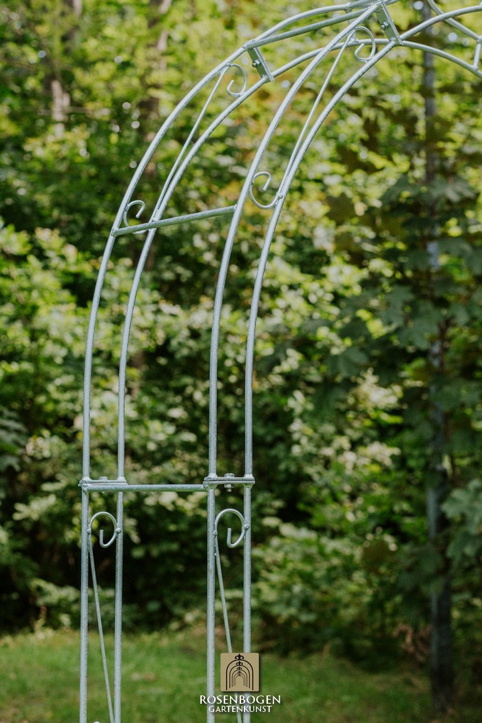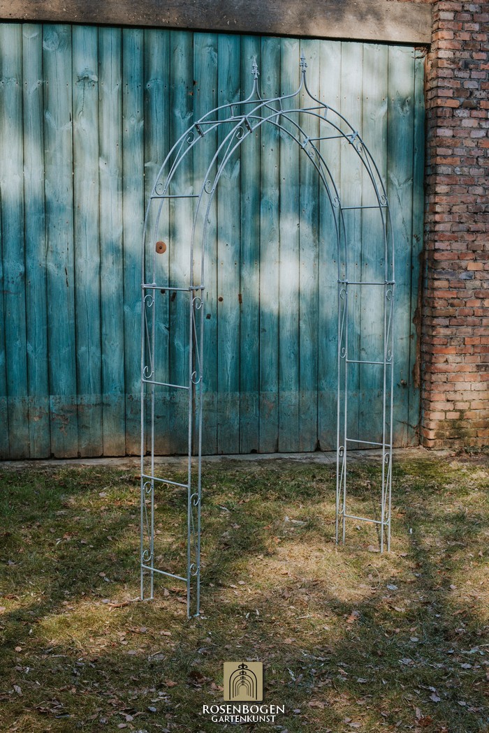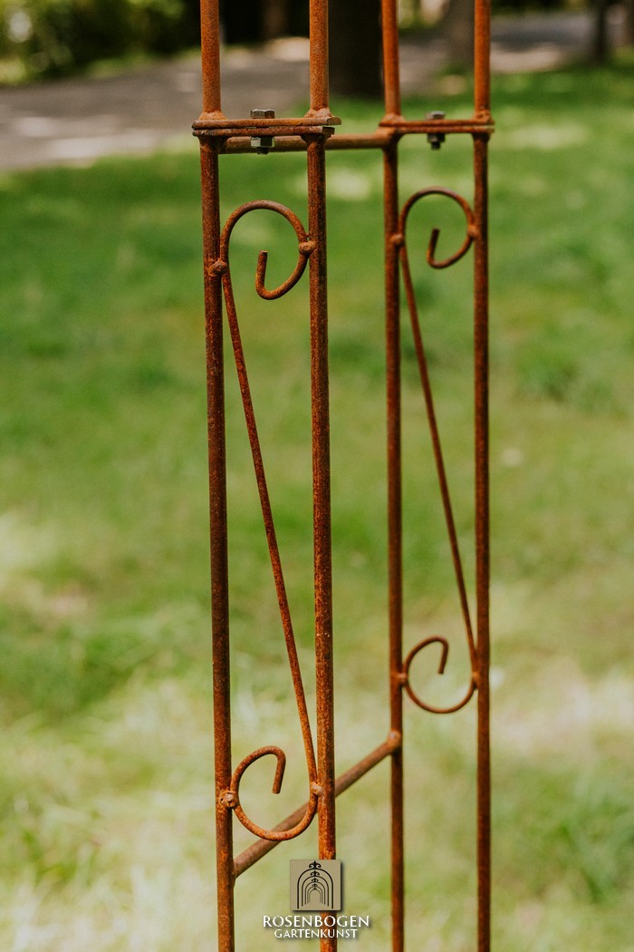The Garden arch LENA, made of solid iron, gives front gardens a beautiful appearance. We offer the Garden arch in a rust look and in galvanised and black versions. This beautiful and sturdy garden arch made of high-quality metal is the perfect climbing aid for all climbing plants such as roses and other climbing flowers. The height of the garden arch is sufficient for everyone and has been handcrafted in true style. The bold ornamentation and stylish design guarantee many design options. Placed free-standing, the garden arch provides a stable place for both ornamental plants and useful plants such as grapes. It also serves as a very decorative garden element without plants and can be used wonderfully as a statue