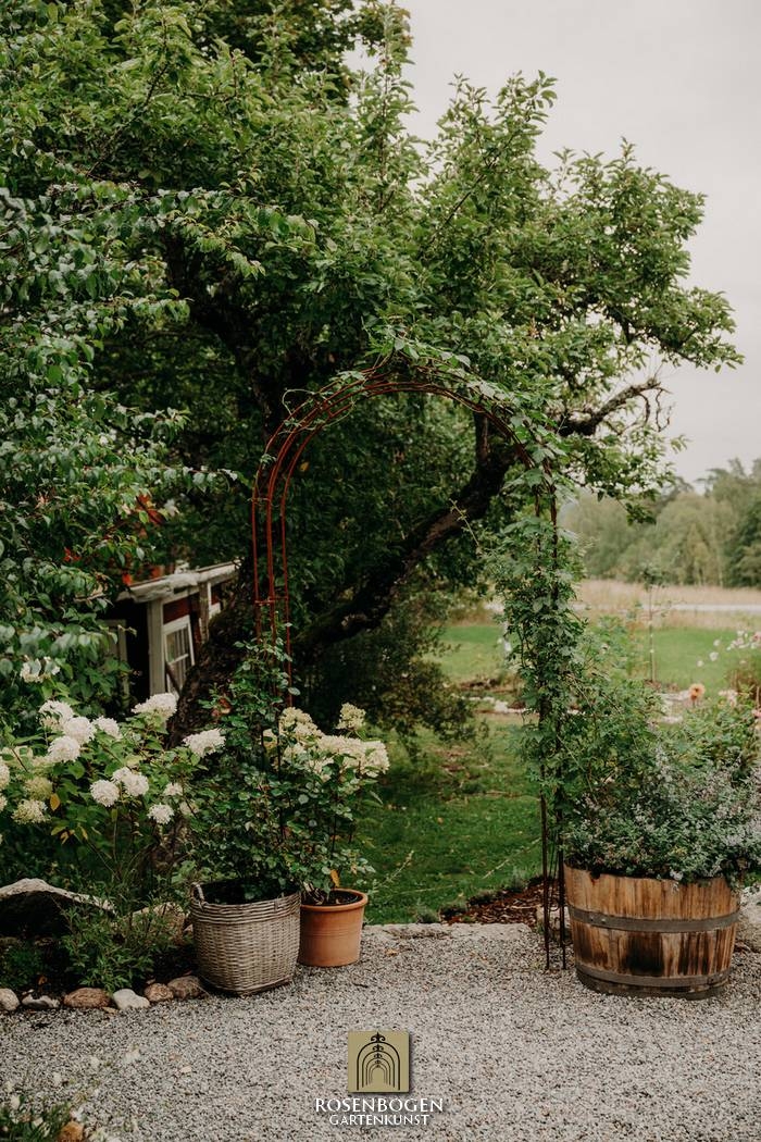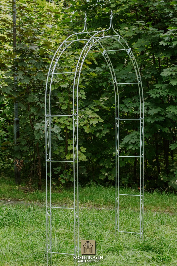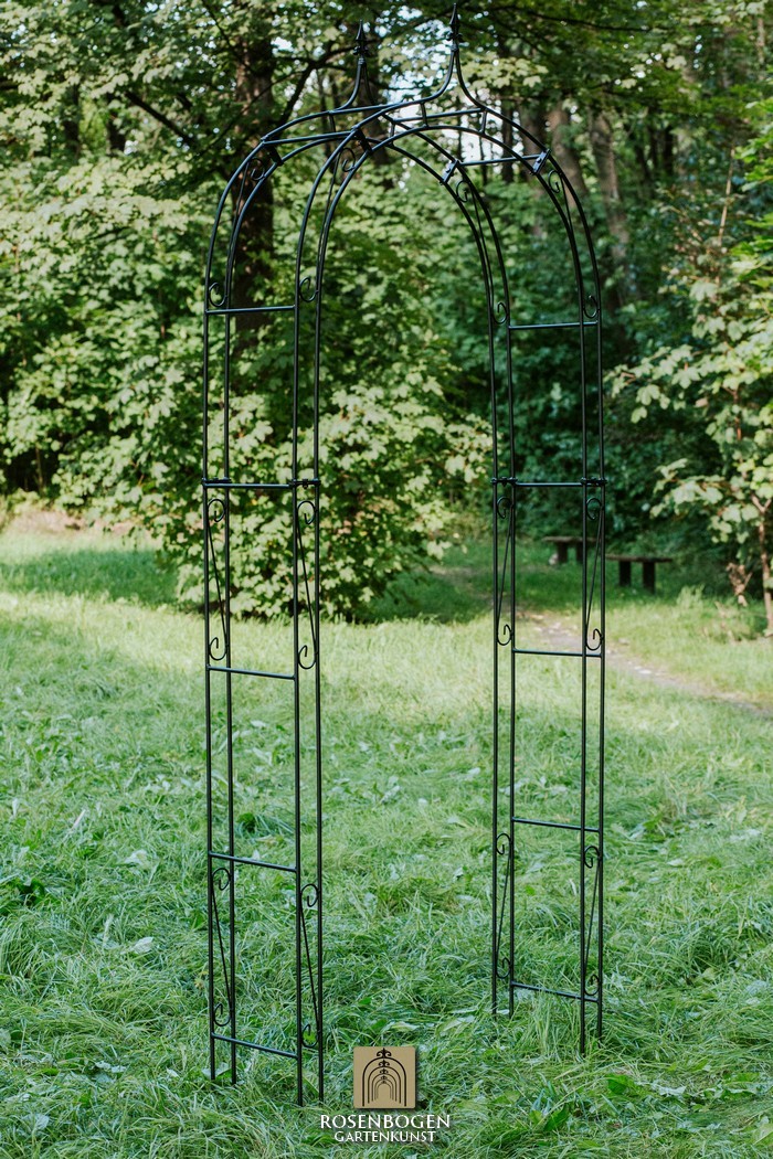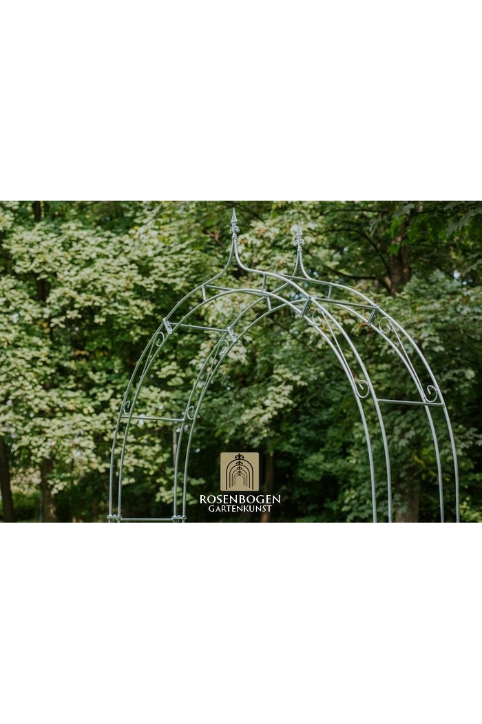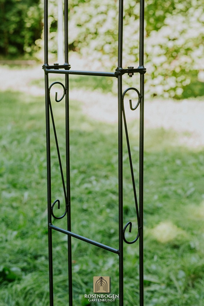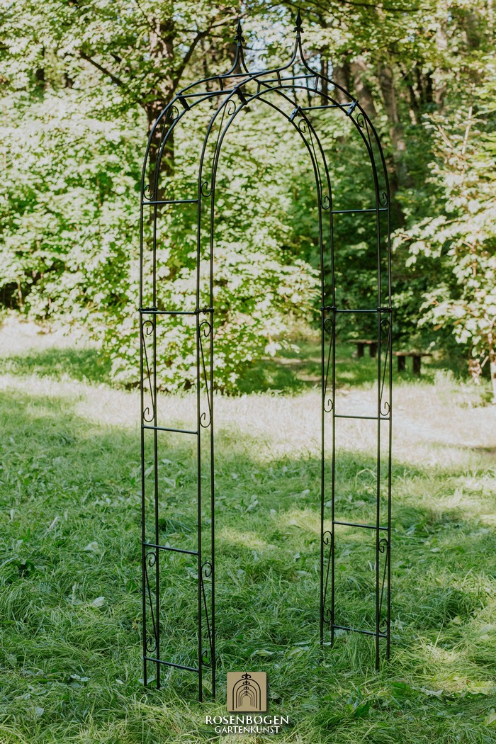 The Garden arch LENA, made of solid iron, gives front gardens a beautiful appearance. We offer the Garden arch in a rust look and in galvanised and black versions. This beautiful and sturdy garden arch made of high-quality metal is the perfect climbing aid for all climbing plants such as roses and other climbing flowers. The height of the garden arch is sufficient for everyone and has been handcrafted in true style. The bold ornamentation and stylish design guarantee many design options. Placed free-standing, the garden arch provides a stable place for both ornamental plants and useful plants such as grapes. It also serves as a very decorative garden element without plants and can be used wonderfully as a statue