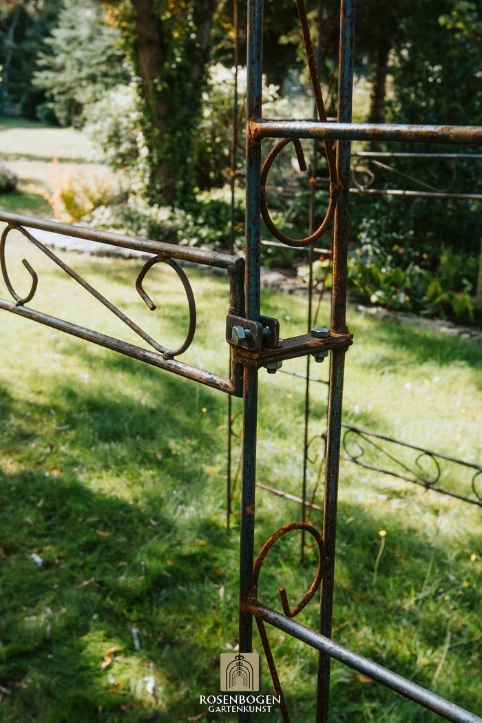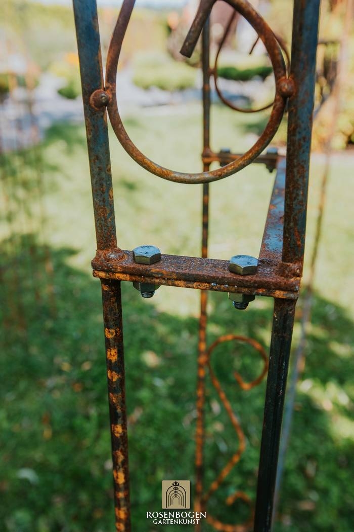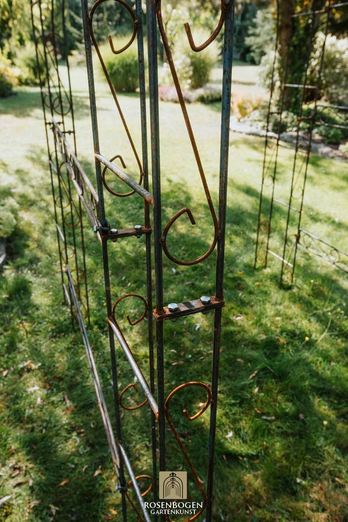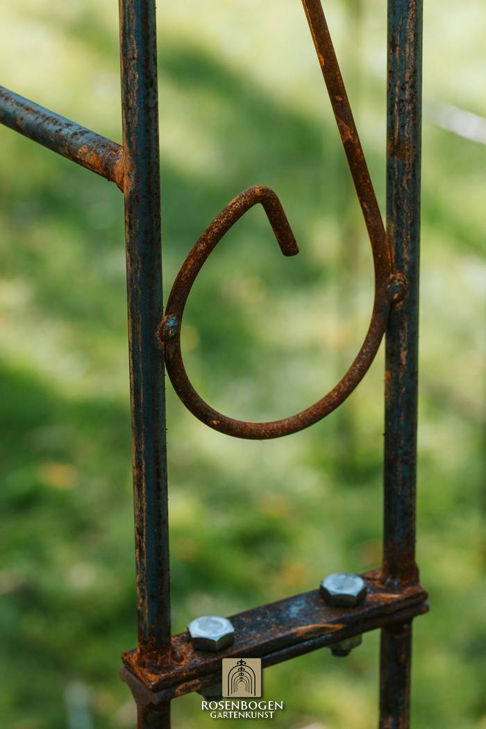Elegant pergola LEA SPITZE made of handcrafted iron (120-220 cm), perfect for climbing plants. Sturdy, weatherproof, available in rust, black or hot-dip galvanised.