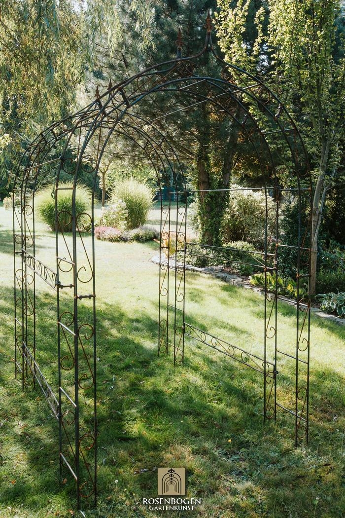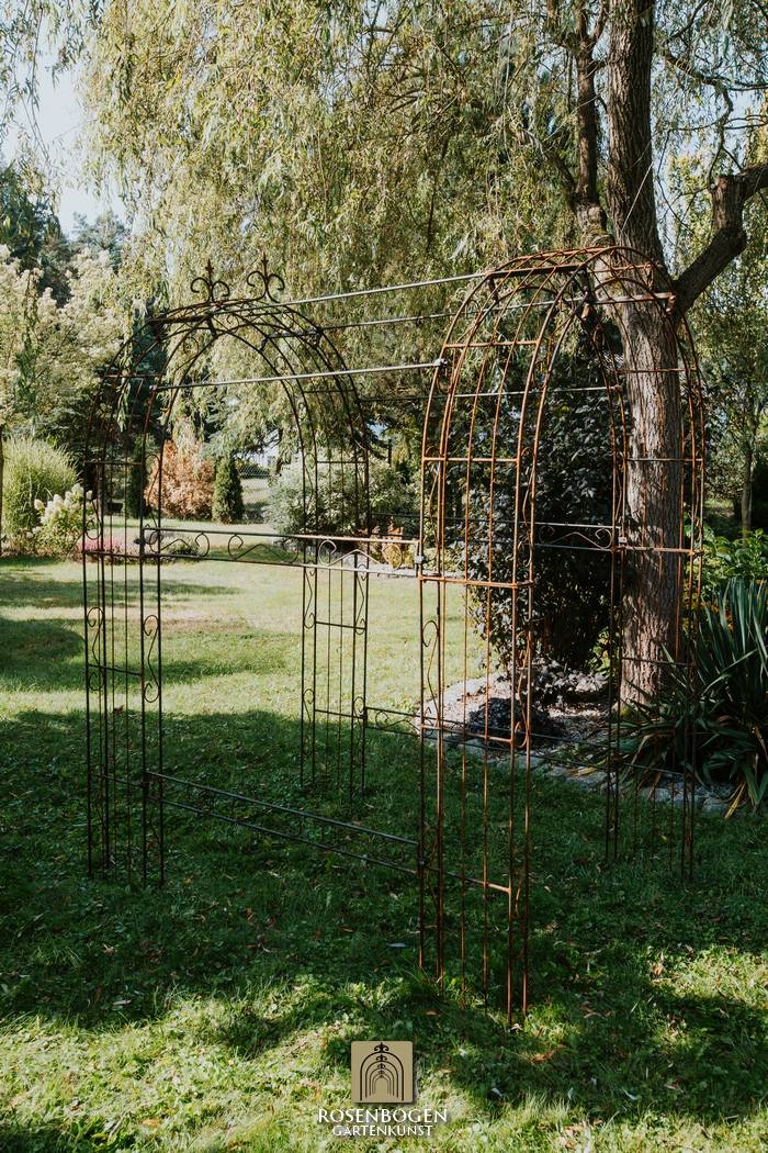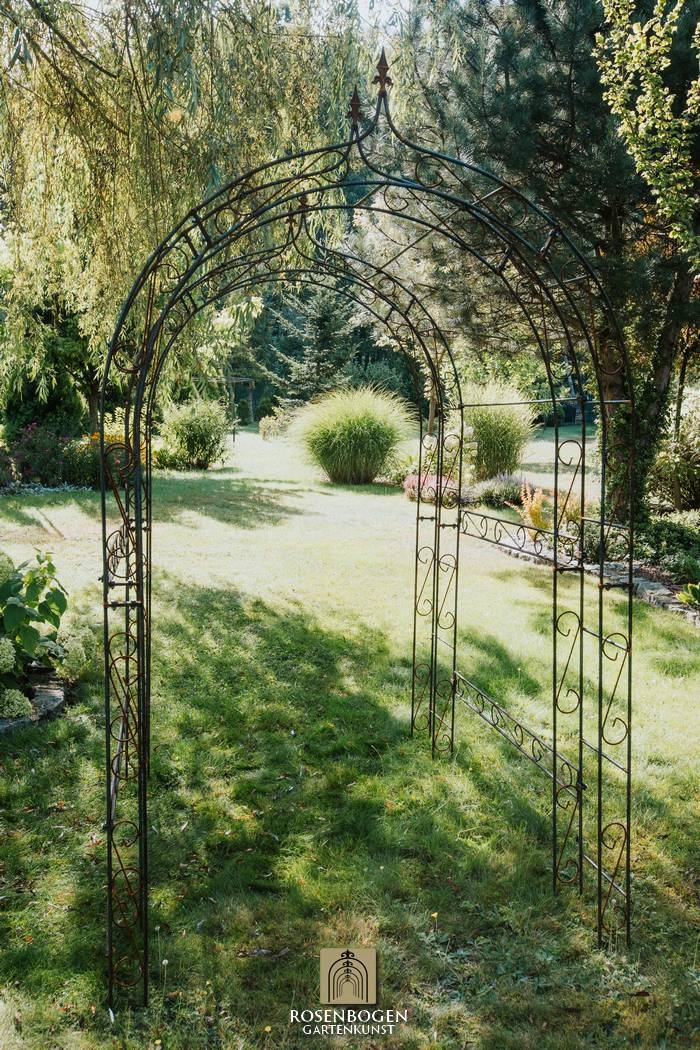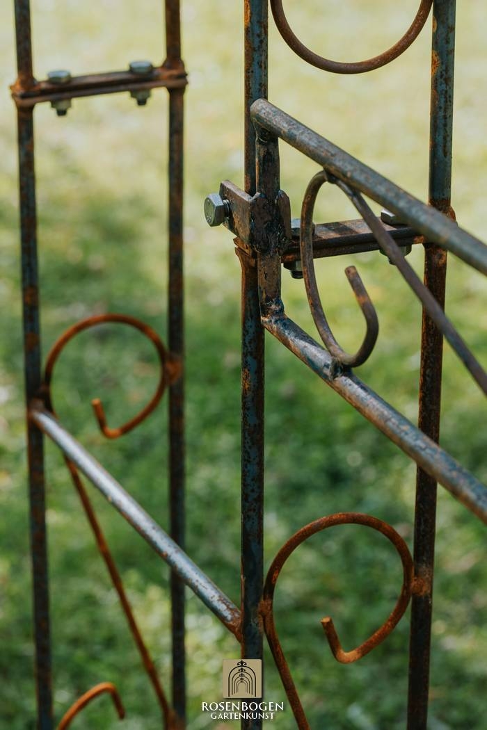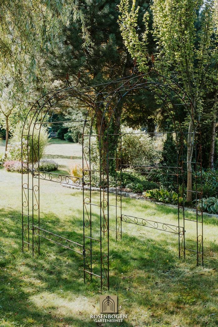Elegant pergola LEA SPITZE made of handcrafted iron (120-220 cm), perfect for climbing plants. Sturdy, weatherproof, available in rust, black or hot-dip galvanised.