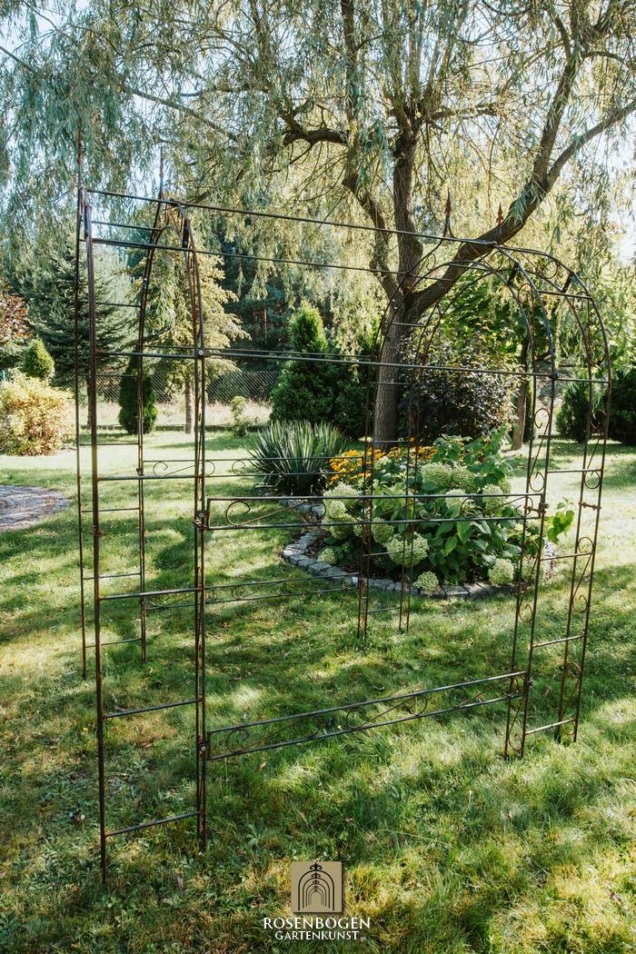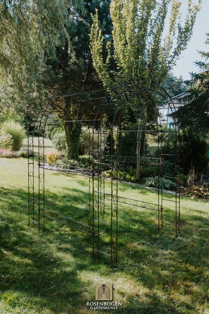 With the high-quality LEA SPITZE arbour (120-220 cm wide), you can create a romantic and functional climbing aid for climbing roses, ivy or vines. The set includes 2 solid rose arches, 4 arbour connectors and 4 connecting poles with brackets, creating a durable and stable garden structure