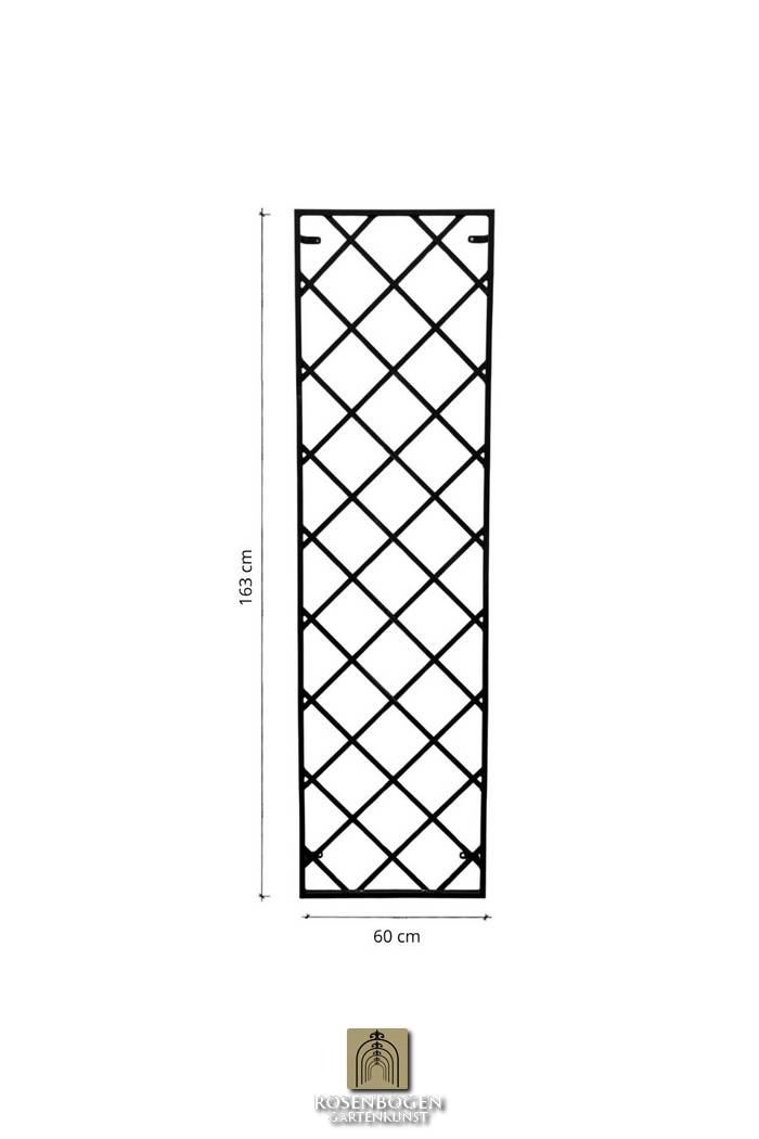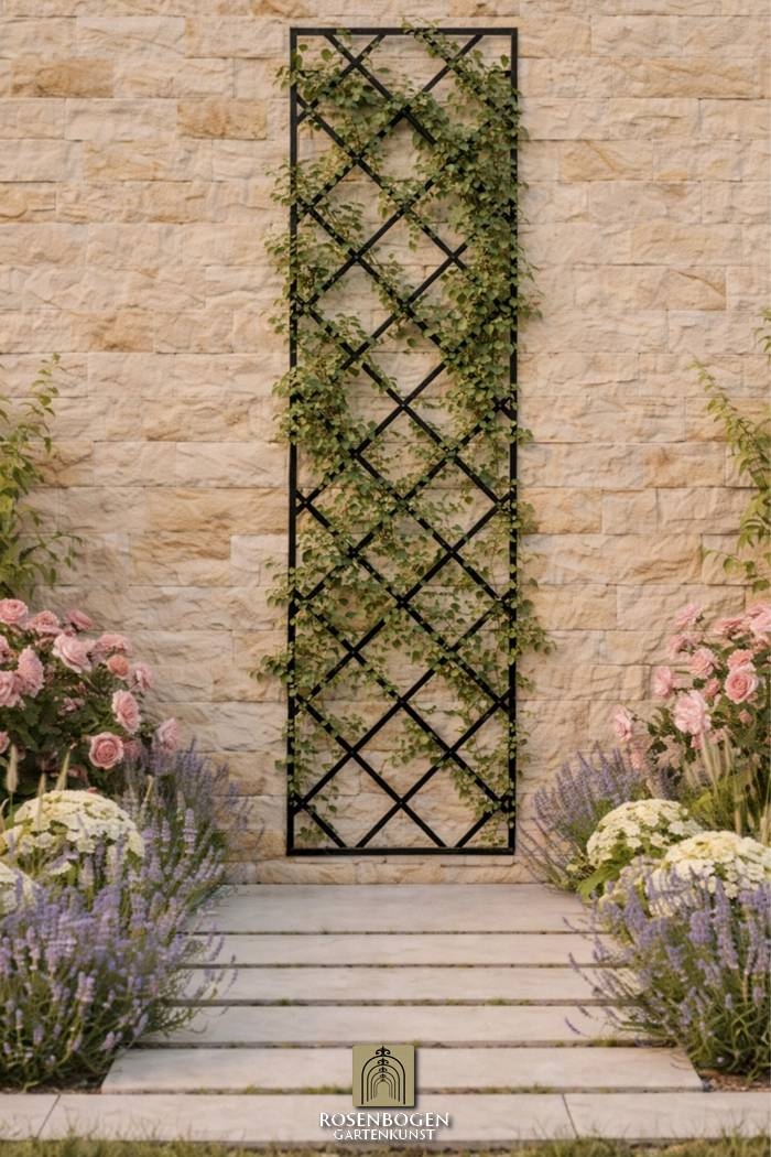 The Trellis Milo combines functionality with discreet elegance. With a height of 163 cm and a width of 60 cm, it provides the perfect climbing support for roses, clematis, ivy or other climbing plants. The decorative diamond structure adds a special touch to any wall - whether in the garden, around the house or on the patio. Made of robust steel and with pre-drilled holes for easy wall mounting, Milo is not only durable but also a real eye-catcher - even without any vegetation. Thanks to its clear design, it blends harmoniously into both modern and classic garden concepts.