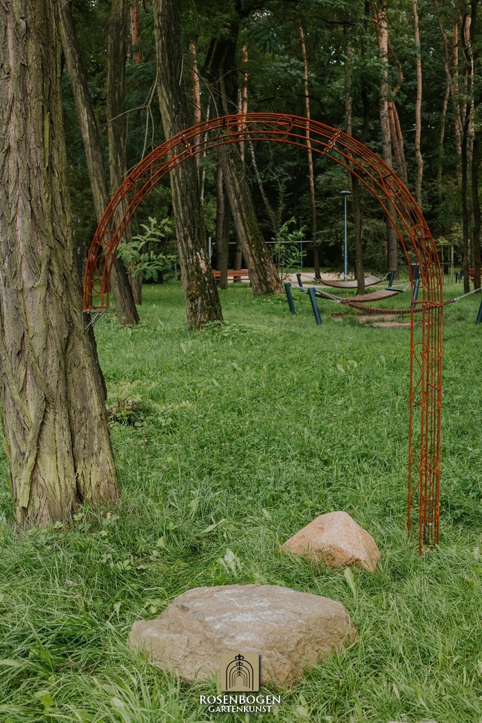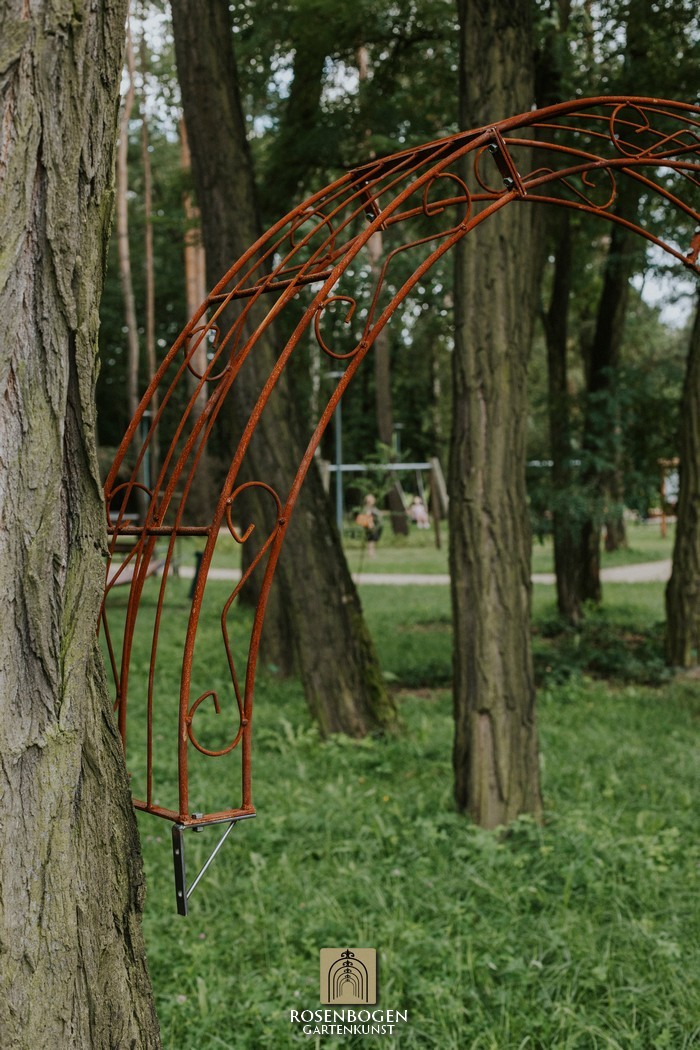 In this offer we would like to introduce you to the WandGarden arch LEA Round . The WandGarden arch differs from the StandardGarden arch in that one side of the arch can be successfully attached to a wall or tree. Its width ranges from 120 to 180 cm and its depth is 33 cm. It is made of 20x4 mm flat bars, 10 mm steel rod